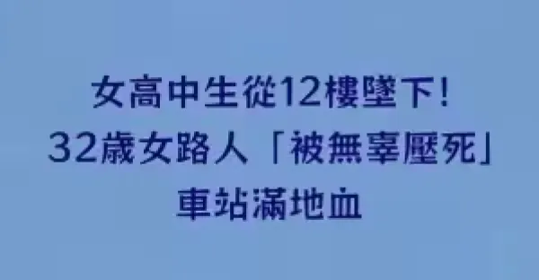 女高中生從12樓墜下! 32歲女路人「被無辜壓死」車站滿地血……