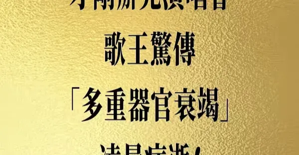 才剛辦完演唱會 歌王驚傳「多重器官衰竭」 凌晨病逝!