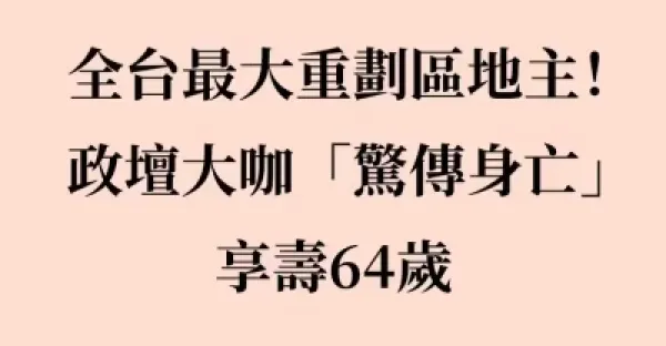 全台最大重劃區地主!!! 政壇大咖「驚傳身亡」享壽64歲 親友嘆 :「發現得太晚...」
