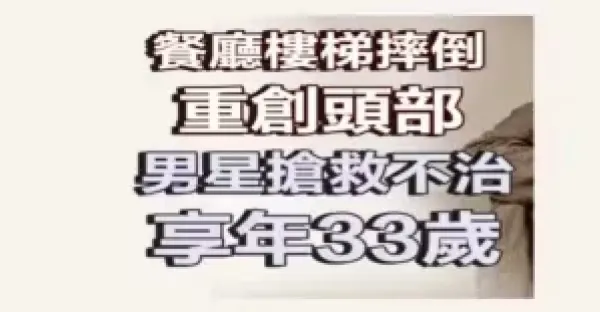餐廳樓梯摔倒!!! 知名男星「腦出血送醫不治」享年33歲