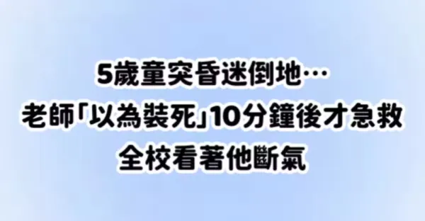 5歲童突昏迷倒地…老師「以為裝死」10分鐘後才急救 全校看著他斷氣