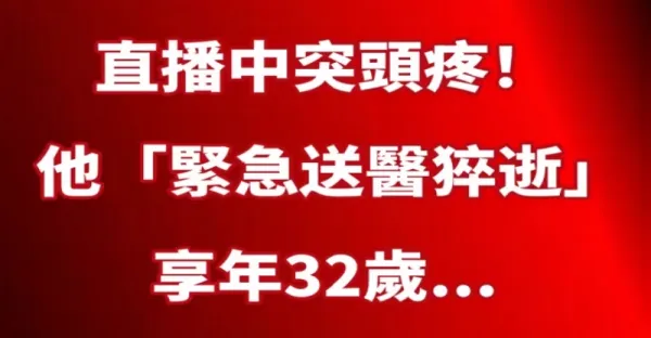 直播中突頭疼!!! 他「緊急送醫猝逝」享年32歲...