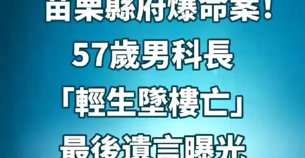 快訊/苗栗縣府爆命案!57歲男科長「輕生墜樓亡」... 最後遺言曝光 #才上任2個月!