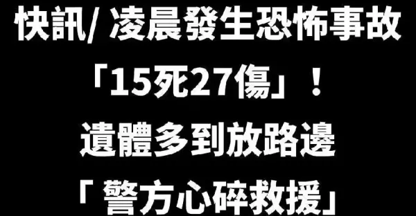 快訊/ 凌晨發生恐怖事故「15死27傷」!遺體多到放路邊「 警方心碎救援」!