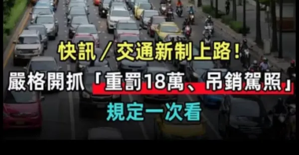 快訊/ 交通新制上路!!! 嚴格開抓「重罰18萬、吊銷駕照」規定一次看