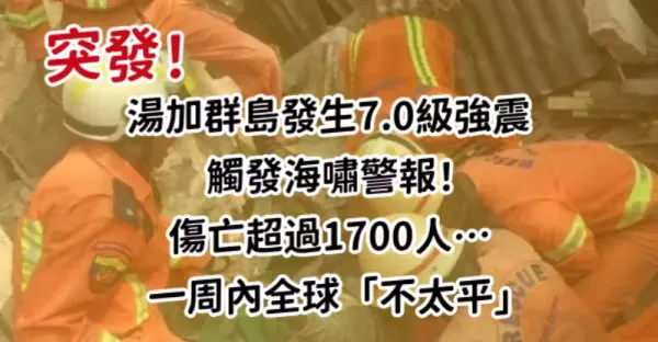 突發!!! 湯加群島發生7.0級強震,觸發海嘯警報!傷亡超過1700人…一周內,全球「不太平」!!!