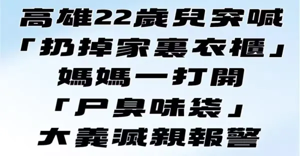 高雄22歲兒突喊「扔掉家裡衣櫃」媽媽一打開「屍臭味袋」大義滅親報警