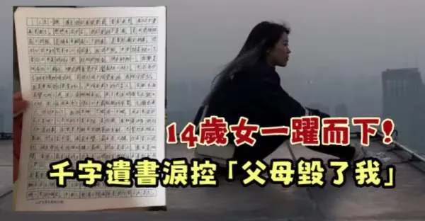 14歲女一躍而下!千字遺書淚控「父母毀了我」:請收手這種傷害 願弟弟被好好對待「盼來生別再相見」