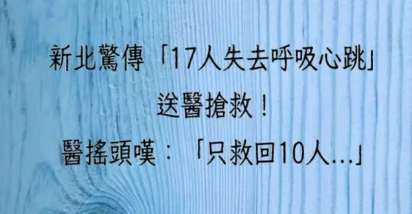 快訊/新北驚傳「17人失去呼吸心跳」送醫搶救!醫搖頭嘆:「只救回10人...」