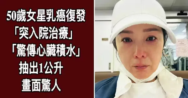50歲女星乳癌復發「突入院治療」「驚傳心臟積水」抽出1升畫面驚人