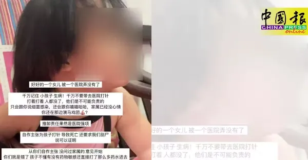 3歲女重感冒送院被注射多針 「我眼睛看不到……」 成了對爸爸的遺言。 僅2個小時,女兒變成一具冷冰冰的屍體