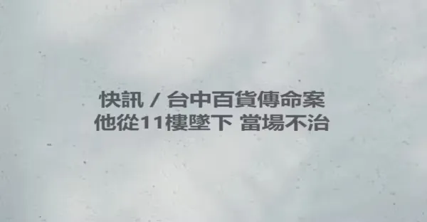 快訊台中百貨大件事!他突然「從11樓墜下」當場不治!