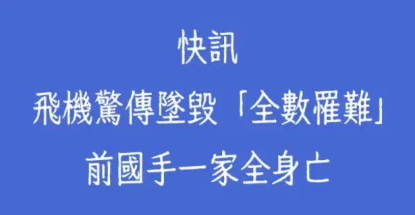 快訊/飛機驚傳墜毀「全數罹難」前國手一家全身亡
