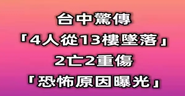 突發 / 台中驚傳「4人從13樓墜落」2亡2重傷「恐怖原因曝光」