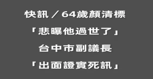 快訊 / 64歲顏清標「悲曝他過世了」 台中市副議長 「出面證實死訊」