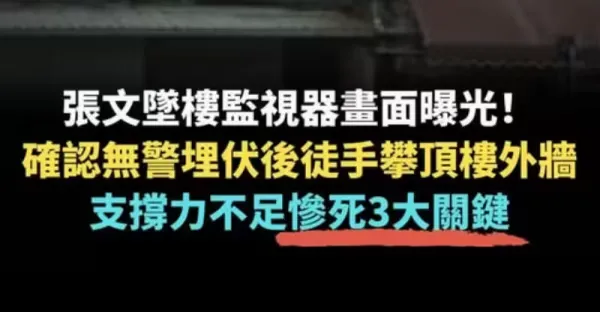 張文墜樓監視器畫面曝光!!! 確認無警埋伏後徒手攀頂樓外牆,支撐力不足慘死3大關鍵