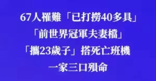 67人罹難「已打撈40多具」!「前世界冠軍夫妻檔」 攜23歲子搭死亡班機 一家三口殞命!
