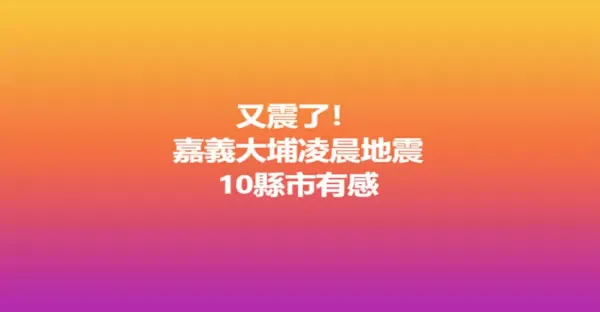 又震了!嘉義大埔凌晨「規模4.4地震」10縣市有感!