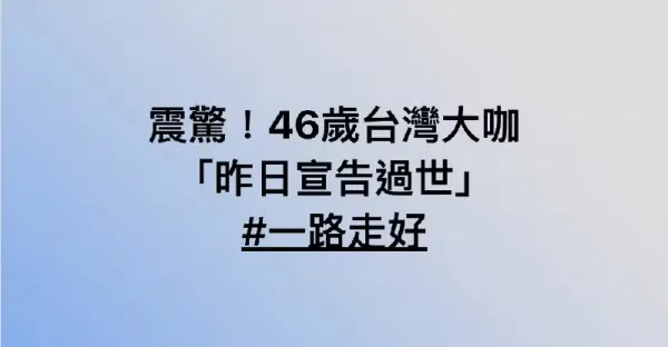 震驚!46歲台大咖「昨日宣告過世」一路走好
