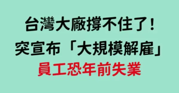 台灣大廠撐不住了!突宣布「大規模解僱」 員工恐年前失業