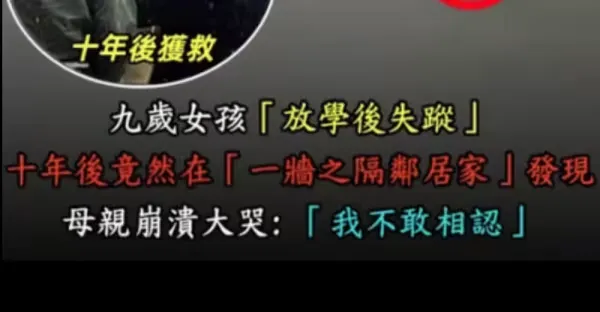 九歲女孩「放學後失蹤」十年後竟然在「一牆之隔鄰居家」發現, 母親崩潰大哭:「不敢相認」