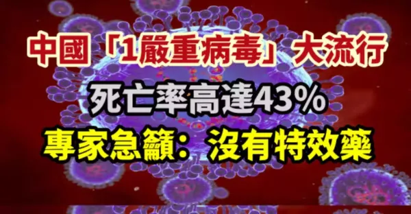 中國爆發「1種嚴重病毒」大流行,死亡率高達43%!專家緊急呼籲:目前無特效藥,計劃前往中國旅遊者務必提高警覺,小心防範,保護自身安全。