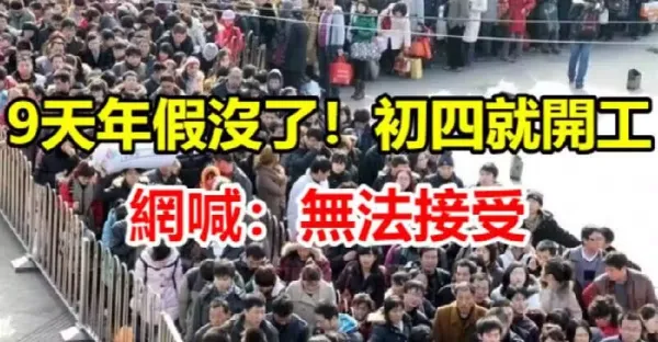 快訊/9天年假沒了!初四就要開工,網喊:無法接受