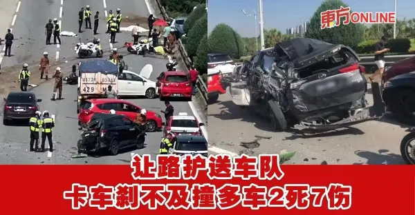 讓路護送車隊 卡車剎不及撞多車2死7傷