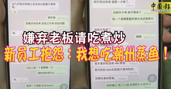 吉打州某員工嫌棄老闆請吃煮炒 員工抱怨:我想吃潮州蒸魚!