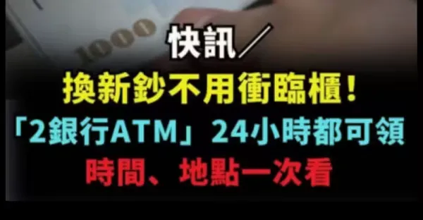 快訊/ 換新鈔不用沖臨櫃 「2銀行ATM」 24小時都可領