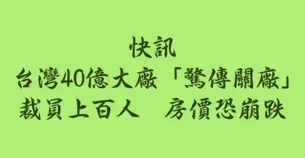 快訊/ 台灣40億大廠「驚傳關廠」 裁員上百人, 房價恐崩跌