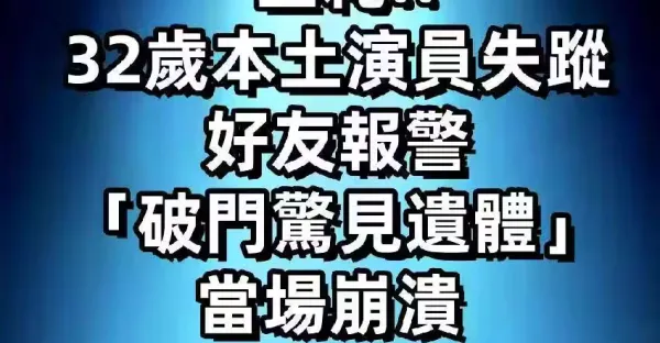 32歲本土演員失蹤!好友報警「破門驚見遺體」當場崩潰 # 告別式時間曝光 !