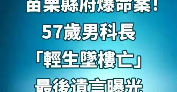 快訊/苗栗縣府爆命案!57歲男科長「輕生墜樓亡」...最後遺言曝光 # 才上任2個月!