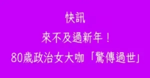 快訊/來不及過新年!!! 80歲政治女大咖 「驚傳過世」