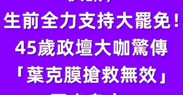 快訊/生前全力支持大罷免!45歲政壇大咖驚傳「葉克膜搶救無效」不幸身亡