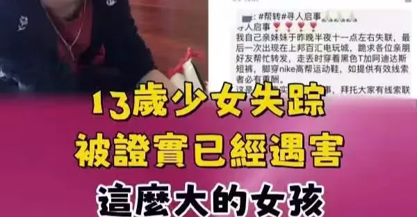 13歲少女失蹤被證實已經遇害,這麼大的女孩你放心她單獨外出嗎?警察: 以後要教育好孩子。