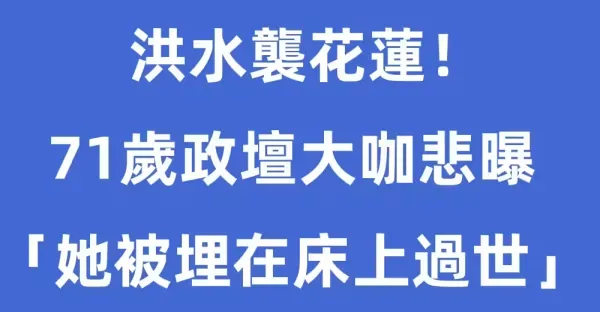 快訊/洪水襲花蓮!71歲政壇大咖悲曝「她被埋在床上過世」痛苦發聲了