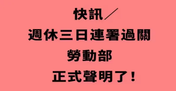 快訊/周休三日連署過關, 勞動部正式聲明了