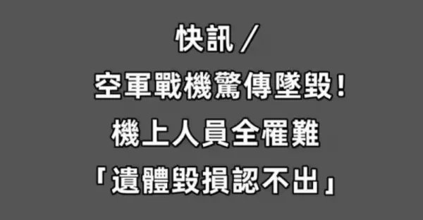 快訊/空軍戰機驚傳墜毀!!! 機上人員全罹難 「遺體毀損認不出」