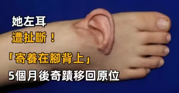 她左耳遭扯斷 !「寄養在腳背上」5個月後奇蹟移回原位