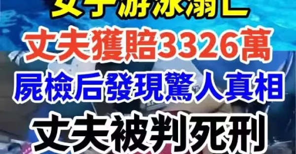 女子游泳溺亡, 丈夫獲賠3326萬,屍檢後發現驚人真相,丈夫被判死刑...
