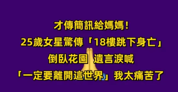 才傳簡訊給媽媽!25歲女星驚傳「18樓跳下身亡」倒臥花園 遺言淚喊「一定要離開這世界」我太痛苦了