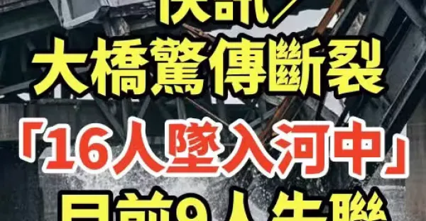 快訊/大橋驚傳斷裂「16人墜入河中」!目前9人失聯「死亡人數曝光!」