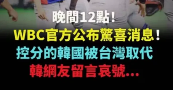 晚間12點!WBC官方公布驚喜消息!控分的韓國被台灣取代,韓網友留言哀號...