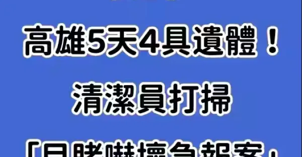 快訊/高雄5天4具遺體! 清潔員打掃「目睹嚇壞急報案」