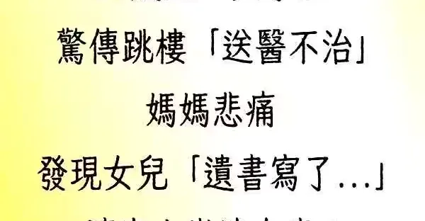 快訊/15歲北一女學生驚傳跳樓「送醫不治」!媽媽悲痛發現女兒「遺書寫了...」讓家人崩潰自責