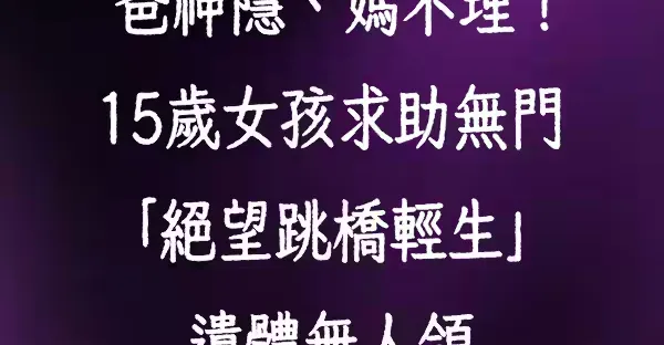 快訊/爸神隱、媽不理!15歲女求助無門「絕望跳橋輕生」 遺體無人領.