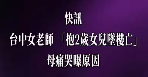 快訊/台中女老師「抱2歲女兒墜樓亡」!母痛哭曝原因.