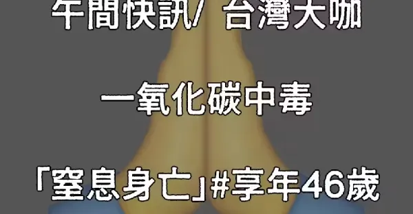 午間快訊/ 台灣大咖 一氧化碳中毒「窒息身亡」#享年46歲