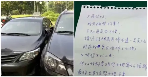 不小心停太過去!隔壁車主留紙條「我40腰難下車」客氣商量 網一看「卻提醒別照做」:千萬別移車